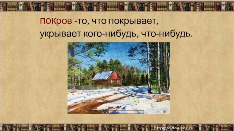 Слайд 9покров -то, что покрывает, укрывает кого-нибудь, что-нибудь.