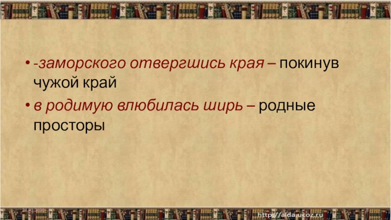 Слайд 8-заморского отвергшись края – покинув чужой край
