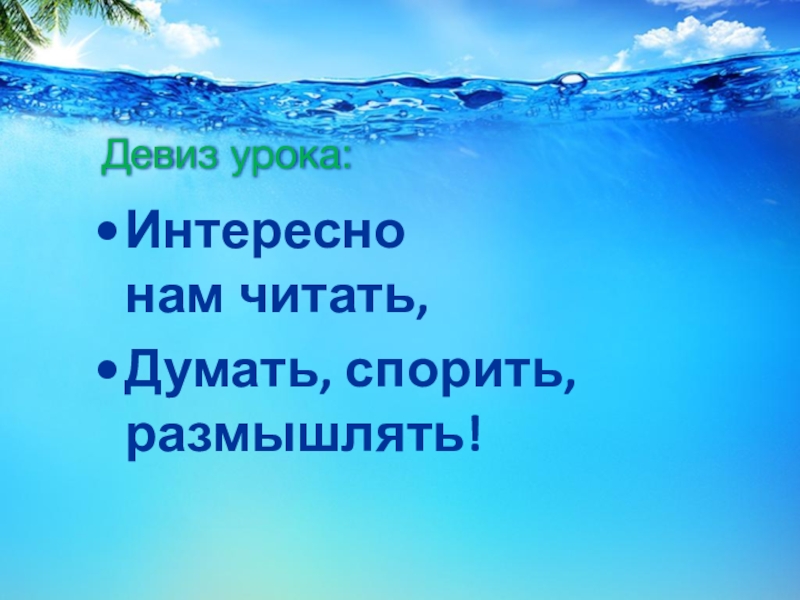 Девиз урока:Интересно нам читать,Думать, спорить, размышлять!