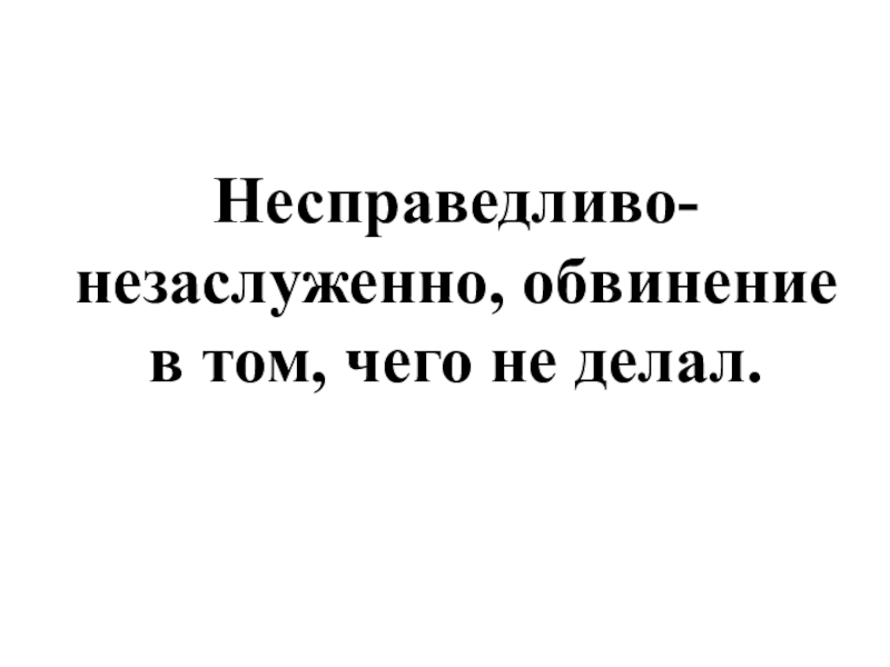 Слайд 27Несправедливо-незаслуженно, обвинение в том, чего не делал.