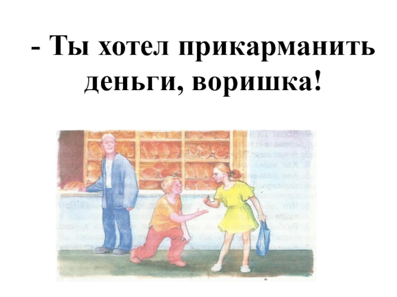 Слайд 13- Ты хотел прикарманить деньги, воришка!
