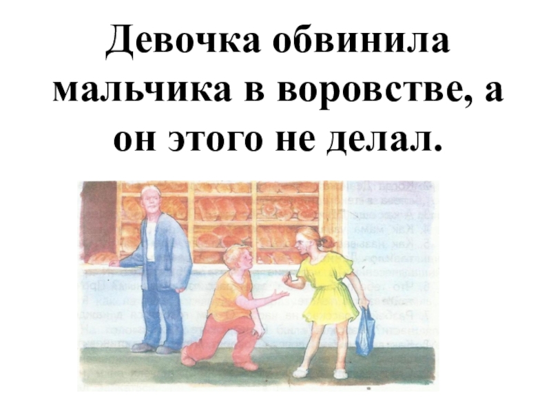 Слайд 25Девочка обвинила мальчика в воровстве, а он этого не делал.