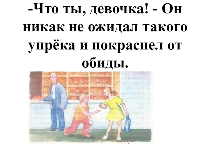 Слайд 15-Что ты, девочка! - Он никак не ожидал такого упрёка и