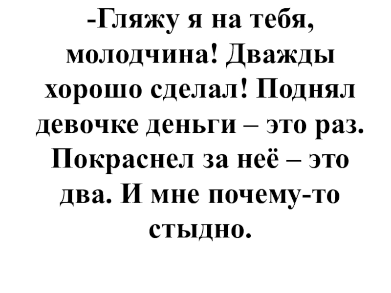 Слайд 21-Гляжу я на тебя, молодчина! Дважды хорошо сделал! Поднял девочке деньги