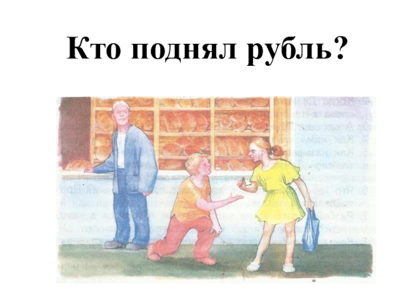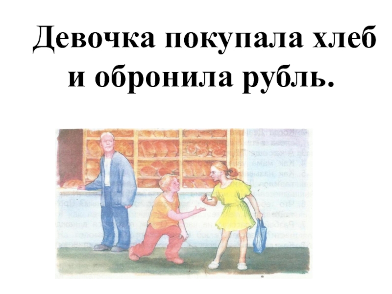 Слайд 3Девочка покупала хлеб и обронила рубль.