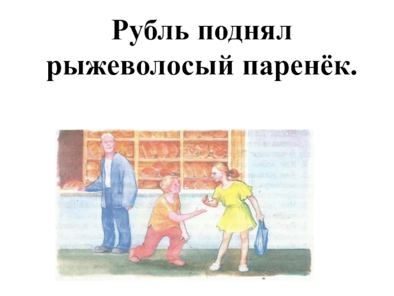 Слайд 5Рубль поднял рыжеволосый паренёк.
