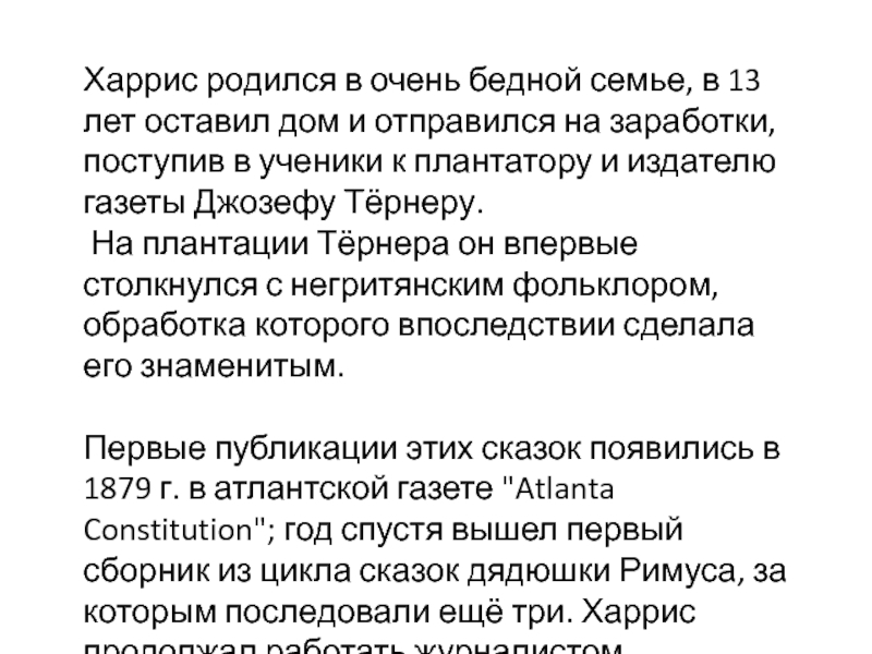 Слайд 1Американский писатель, автор "Сказок дядюшки Римуса"
