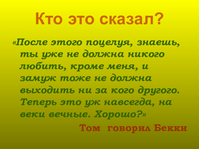 любить, кроме меня, и замуж тоже не должна выходить ни за кого другого. Теперь это уж навсегда, на веки вечные. Хорошо?»