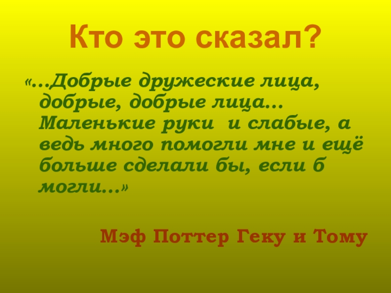 «…Добрые дружеские лица, добрые, добрые лица… Маленькие руки и