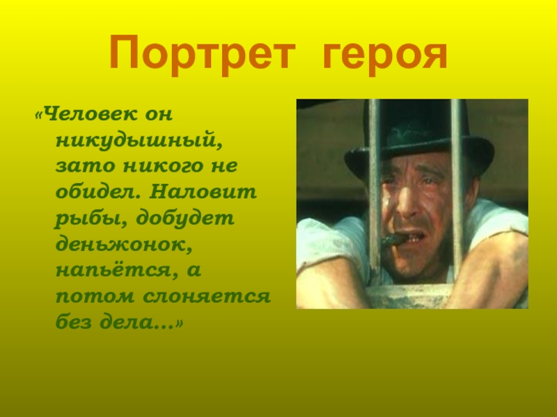 «Человек он никудышный, зато никого не обидел. Наловит рыбы, добудет