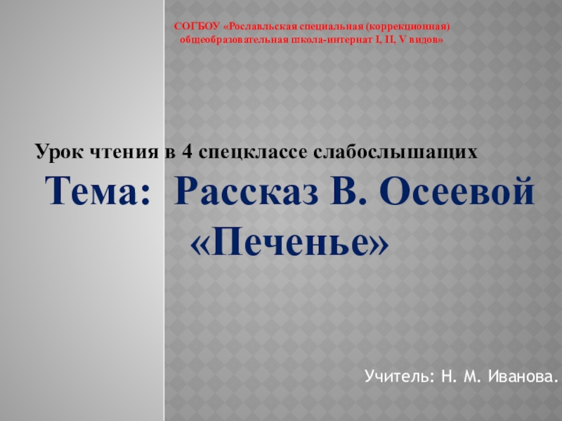 Тема: Рассказ В. Осеевой «Печенье»