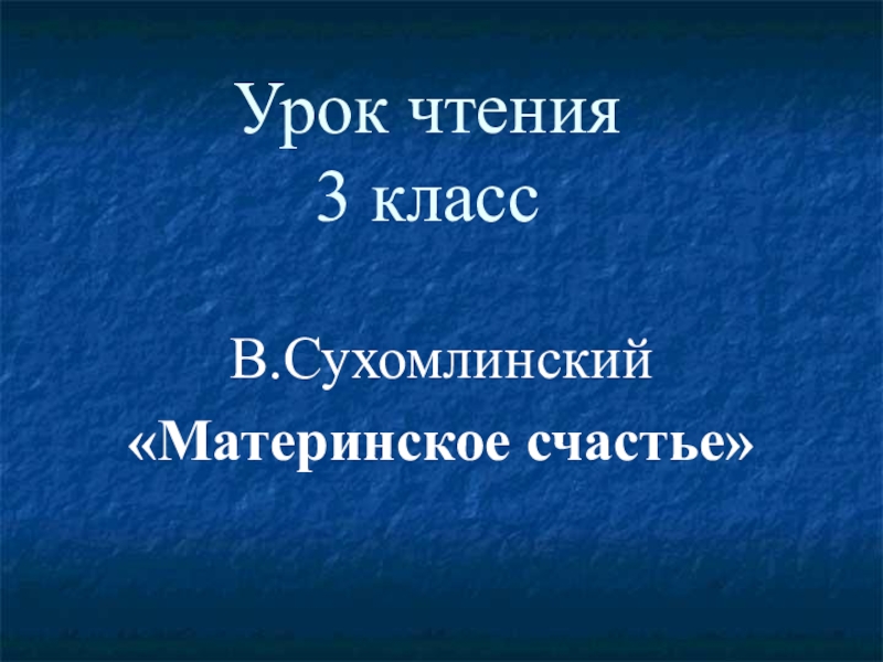 Урок чтения 3 классВ.Сухомлинский«Материнское счастье»