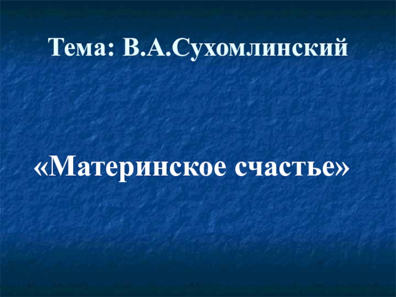 Тема: В.А.Сухомлинский«Материнское счастье»