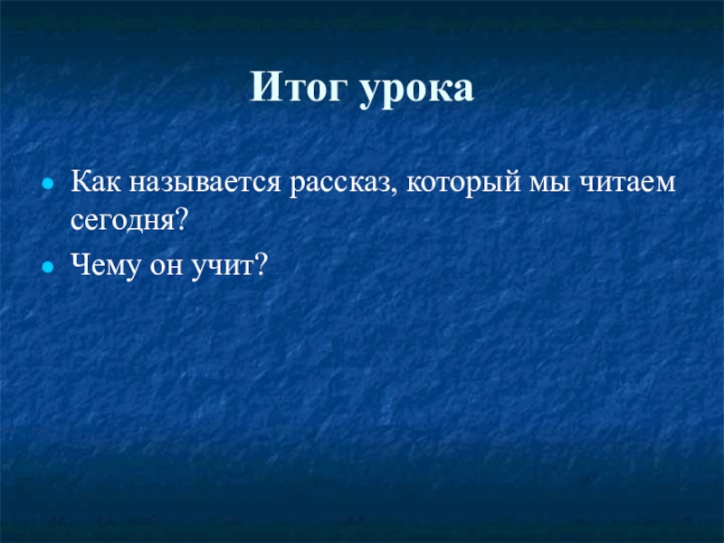 Итог урокаКак называется рассказ, который мы читаем сегодня?Чему он учит?