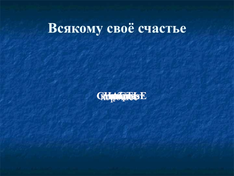 Всякому своё счастьеСЧАСТЬЕпомогаетдобродитяжитьокрыляетмамажизньхорошее