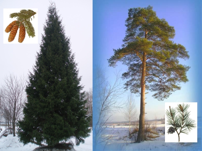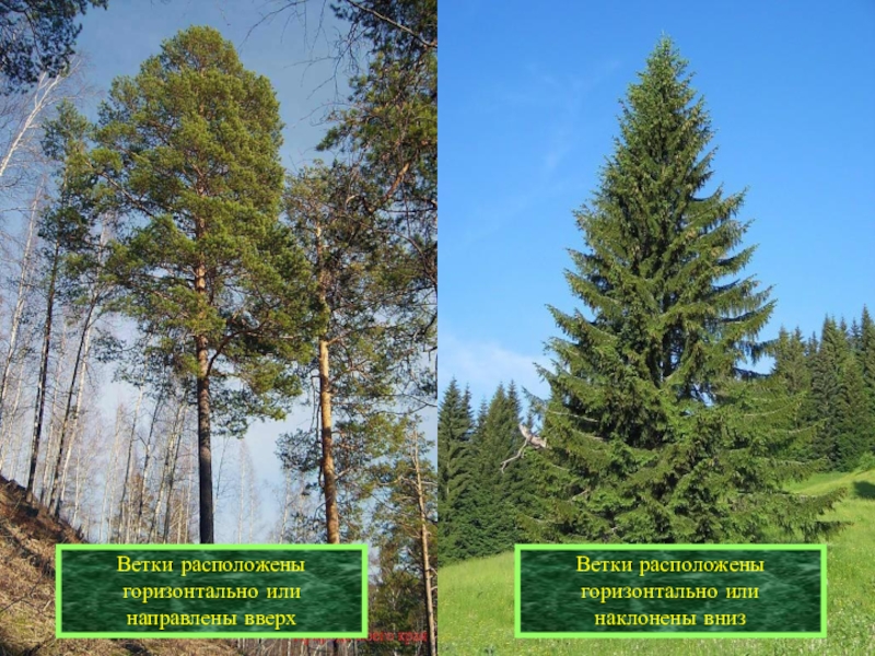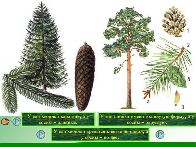 У ели шишки имеют вытянутую форму, а у сосны – округлую.