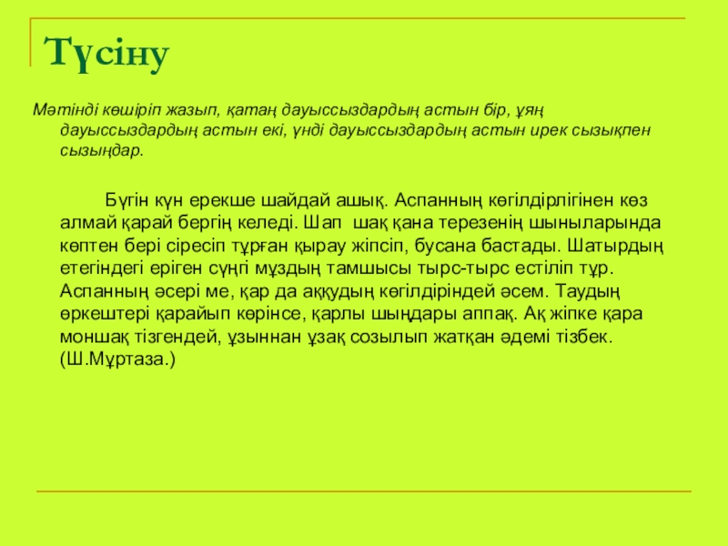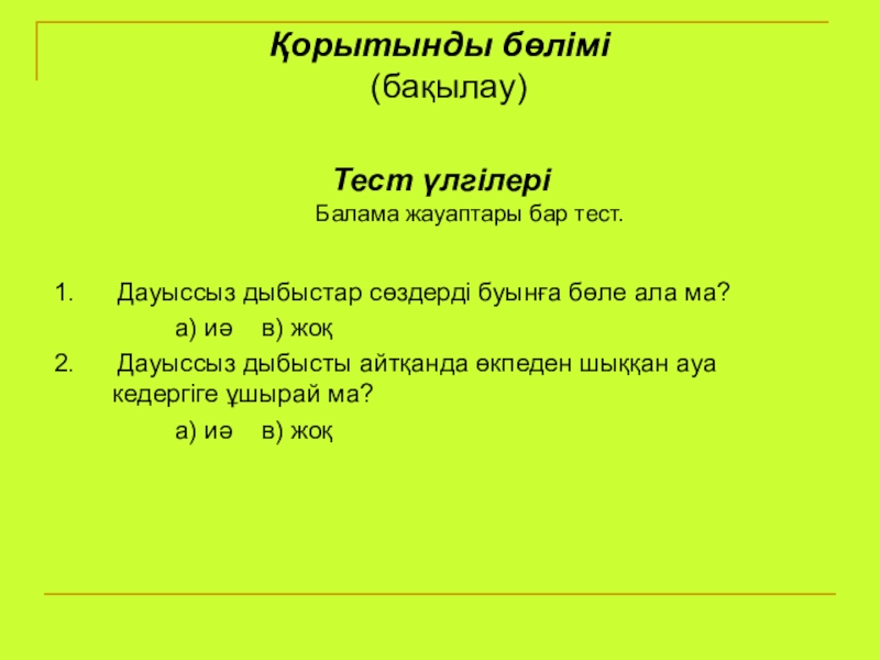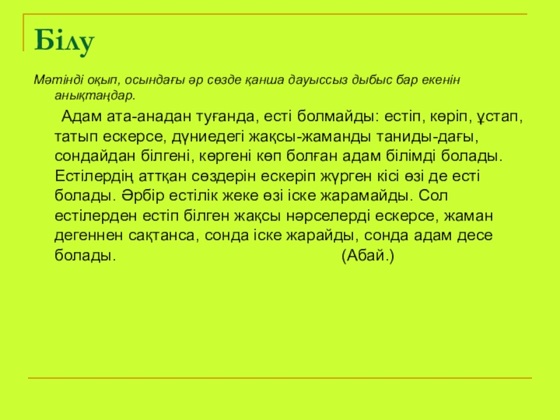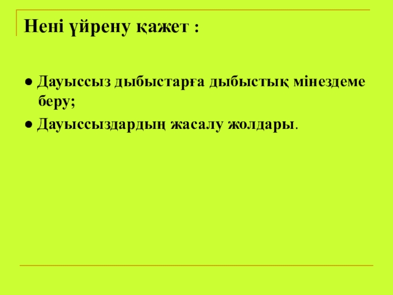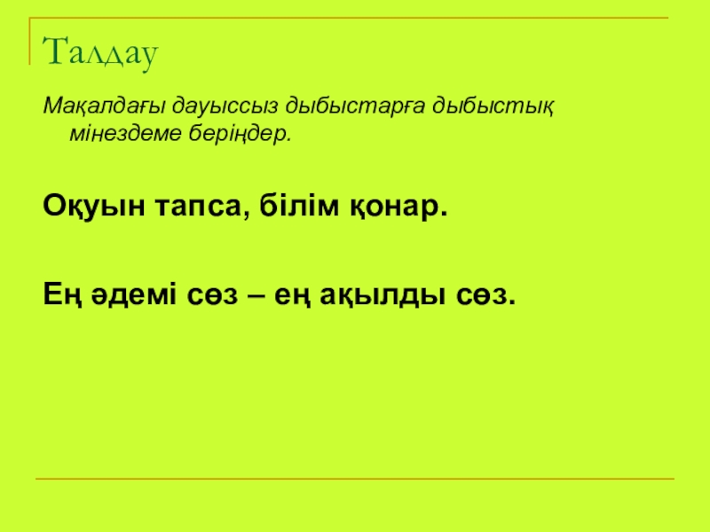 Ұяң дауыссыздарда үннен гөрі салдыр басым : б, в, д, ж, з, г, ғ