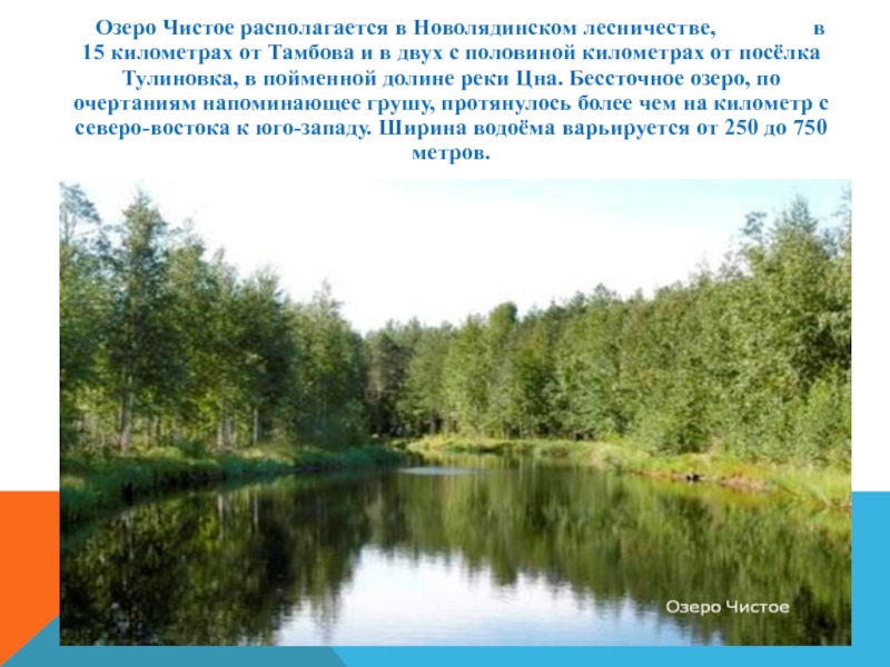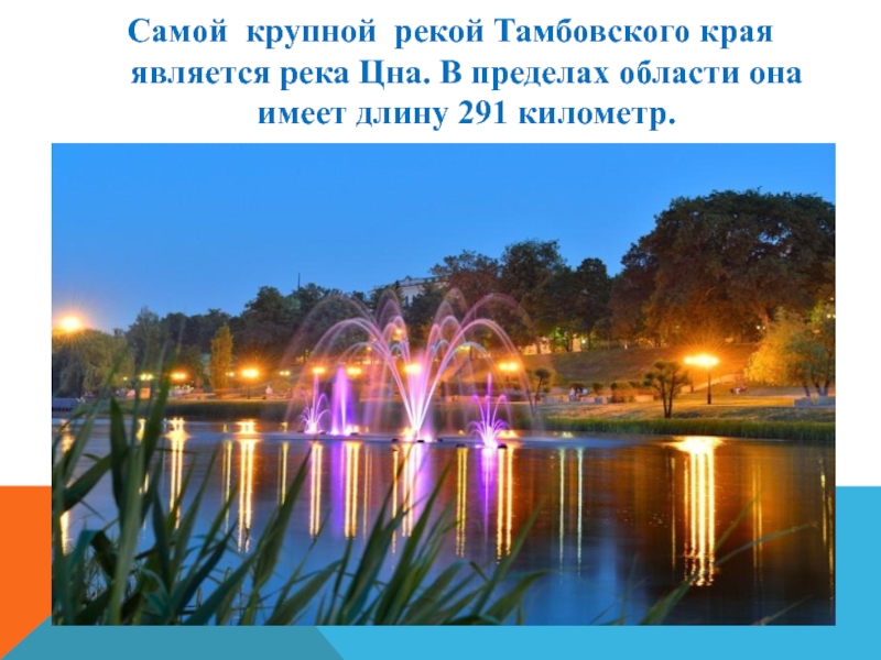 Самой крупной рекой Тамбовского края является река Цна. В пределах области она имеет длину 291 километр.