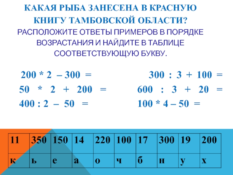 200 * 2 – 300 = 300 : 3 + 100 = 50 * 2 + 200 = 600 : 3 + 20 = 400 : 2 – 50 = 100 * 4 – 50 =