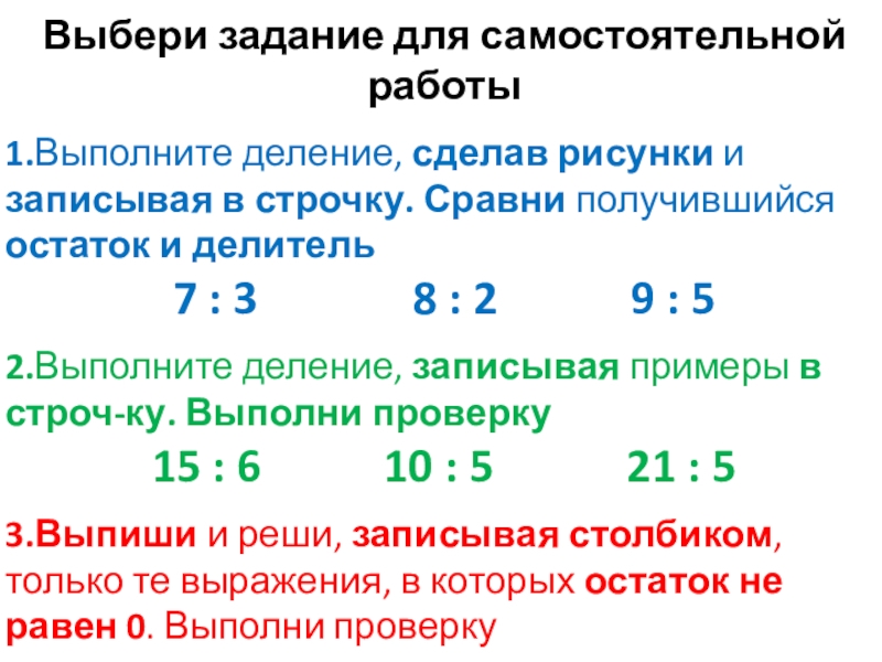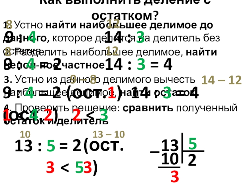 3. Устно из данного делимого вычесть наибольшее делимое, найти остаток