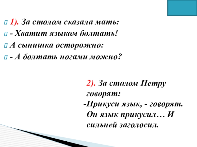 2). За столом Петру говорят: