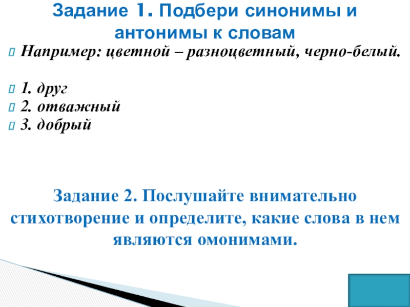 Задание 2. Послушайте внимательно стихотворение и определите, какие слова в нем являются омонимами.