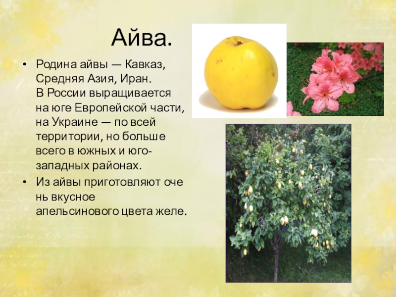 Из айвы приготовляют очень вкусное апельсинового цвета желе.