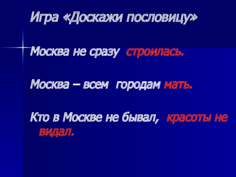 Слайд 19Игра «Доскажи пословицу»