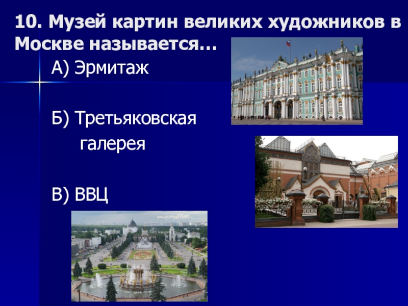 Слайд 1410. Музей картин великих художников в Москве называется…