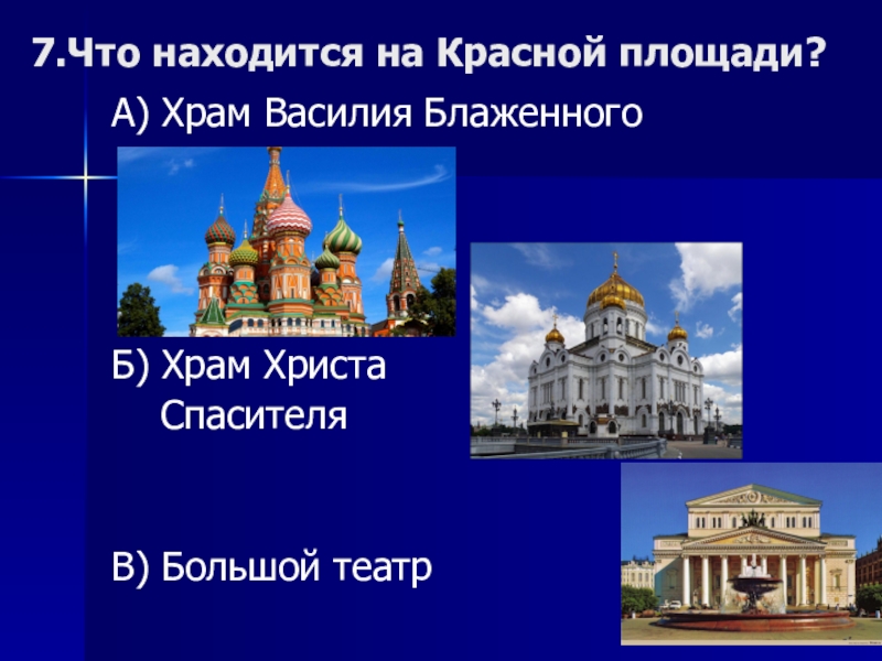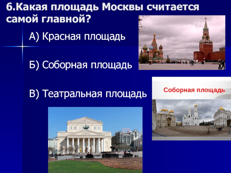 Слайд 106.Какая площадь Москвы считается самой главной?