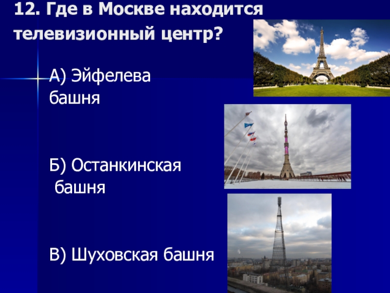 Слайд 1612. Где в Москве находится телевизионный центр?