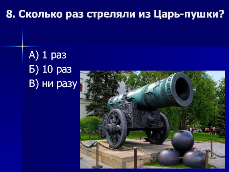 8. Сколько раз стреляли из Царь-пушки?