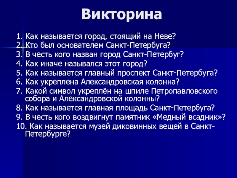 1. Как называется город, стоящий на Неве?