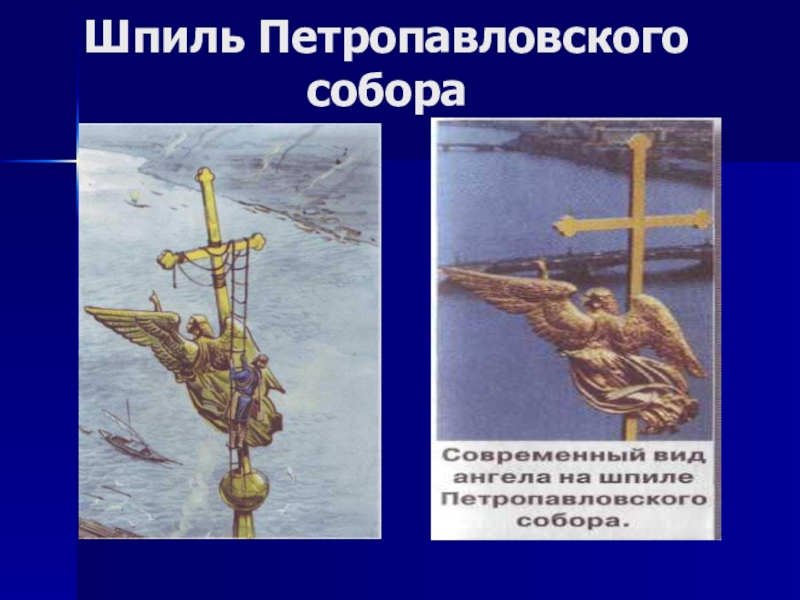 7. Какой символ укреплён на шпиле Петропавловского собора и Александровской колонны?