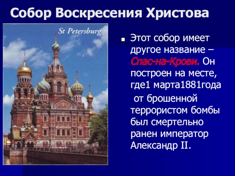 Этот собор имеет другое название – Спас-на-Крови. Он построен