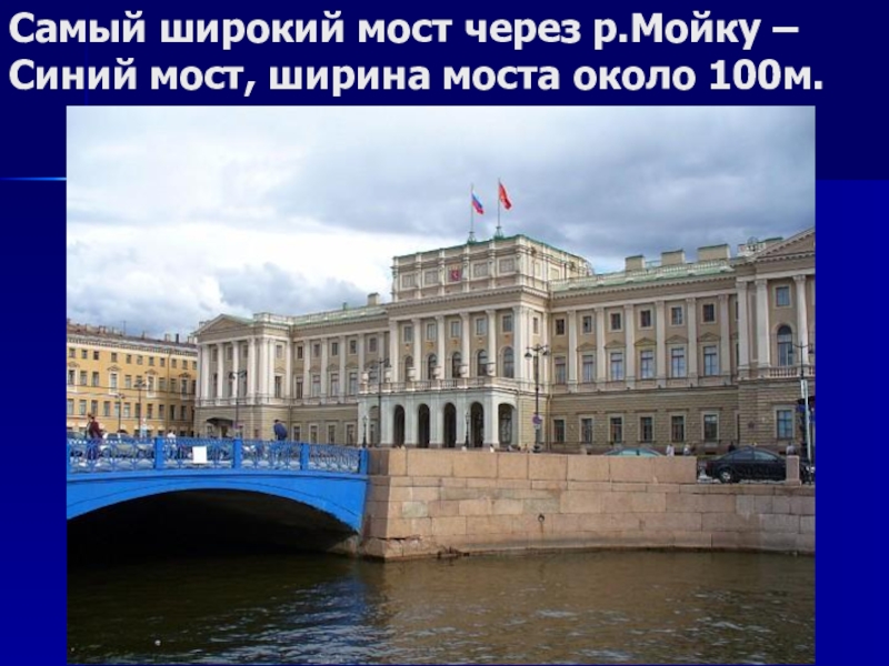 Слайд 41Самый широкий мост через р.Мойку – Синий мост, ширина моста около