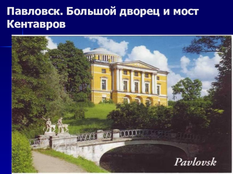 Слайд 38Павловск. Большой дворец и мост Кентавров