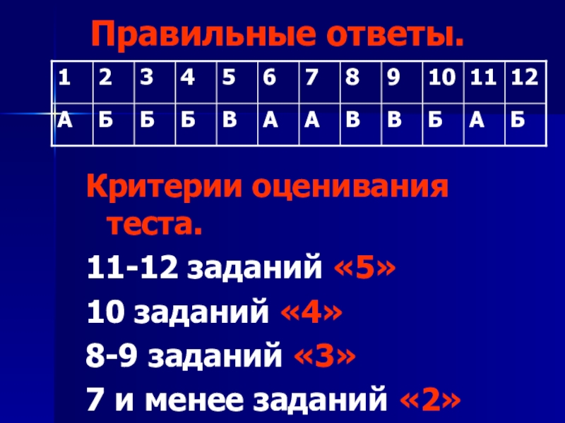 Критерии оценивания теста.