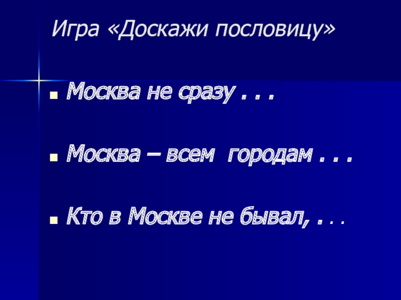 Слайд 18Игра «Доскажи пословицу»