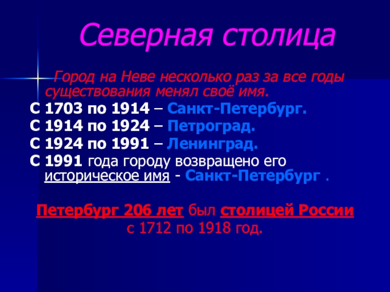 С 1703 по 1914 – Санкт-Петербург.