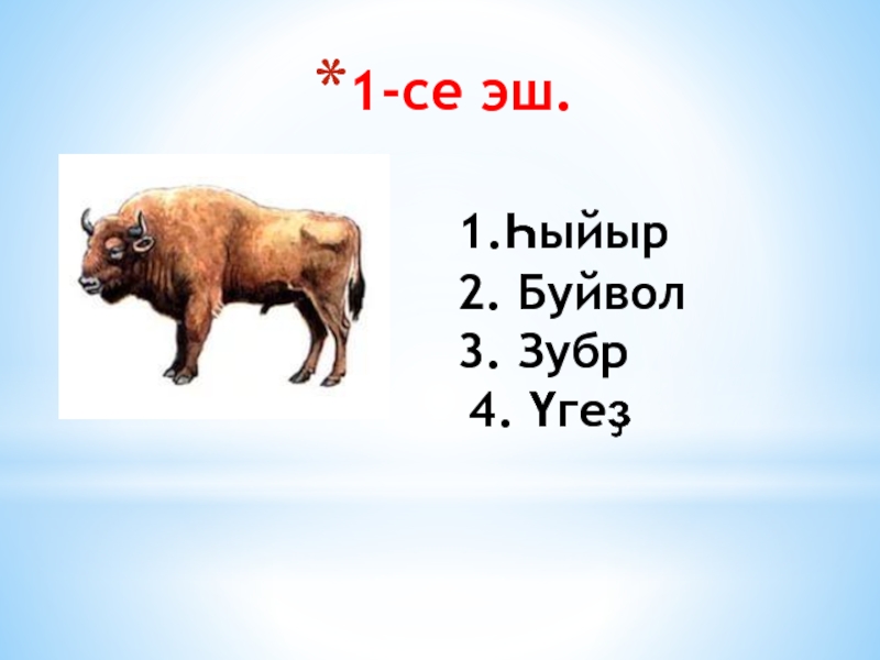 2. Буйвол 3. Зубр 4. Үгеҙ