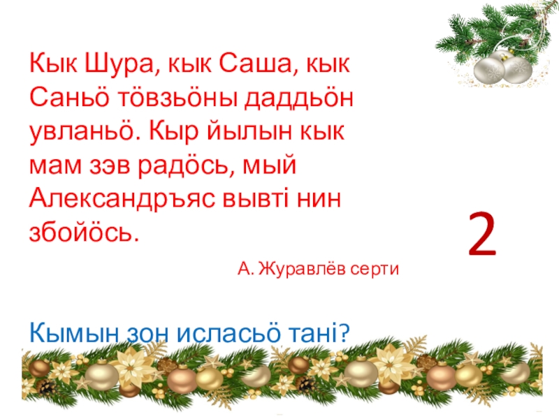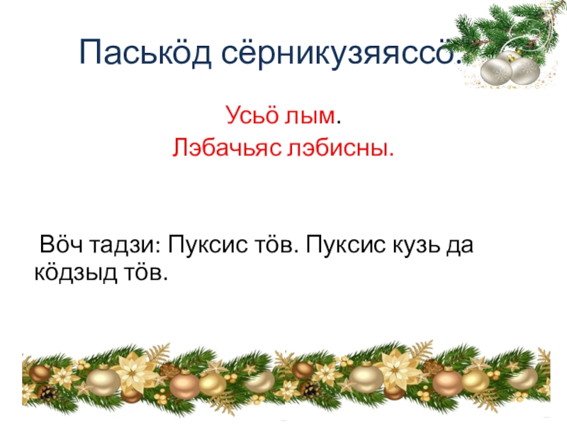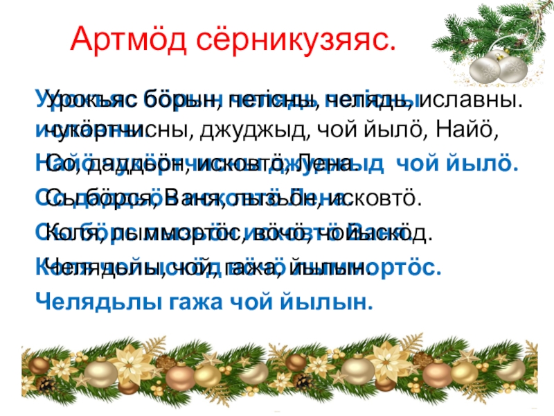Урокъяс бӧрын, петісны, челядь, иславны. чукӧртчисны, джуджыд, чой йылӧ, Найӧ,