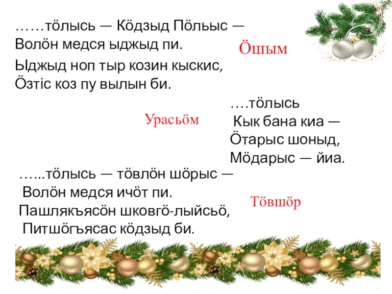 …...тӧлысь — тӧвлӧн шӧрыс —