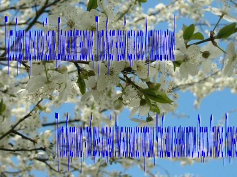 Пусть будет мир, чтоб день за днём Учиться вам за партами, Чтоб ваши знания потом Отдать Отчизне, Родине