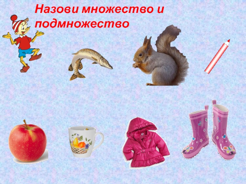 Слайд 4Назови множество и подмножество