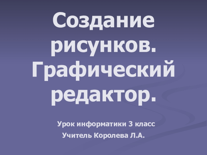 Слайд 1 Создание рисунков. Графический редактор. Урок информатики 3 класс Учитель Королева Л.А.