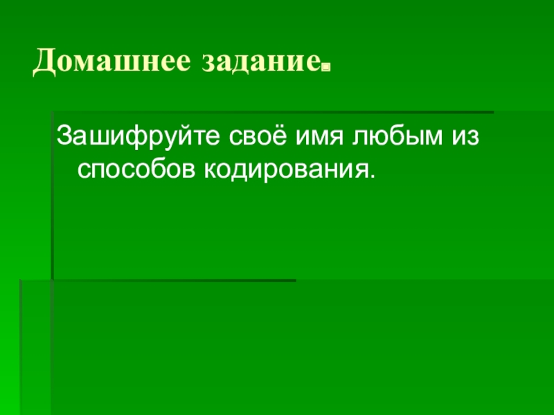 Домашнее задание.Зашифруйте своё имя любым из способов кодирования.