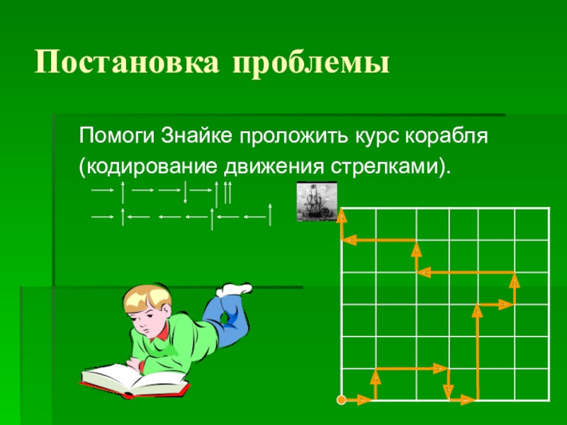 Постановка проблемыПомоги Знайке проложить курс корабля(кодирование движения стрелками).
