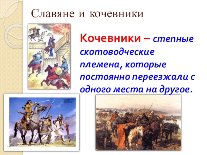Славяне и кочевникиКочевники – степные скотоводческие племена, которые постоянно переезжали с одного места на другое.