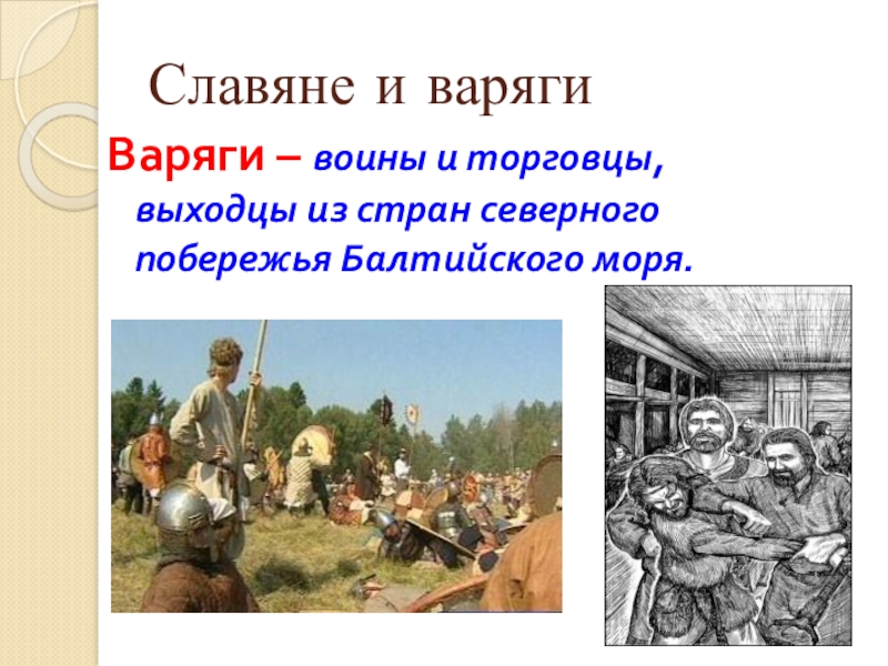 Славяне и варягиВаряги – воины и торговцы, выходцы из стран северного побережья Балтийского моря.